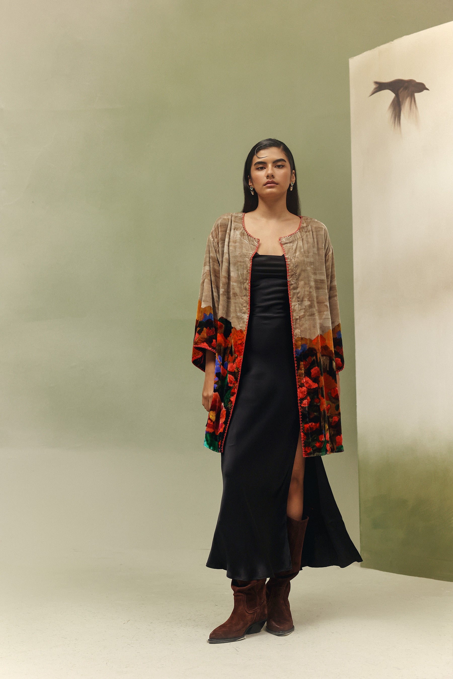 Demi Poncho - Garden Dancers crafted in plush velvet for a soft, luxurious drape