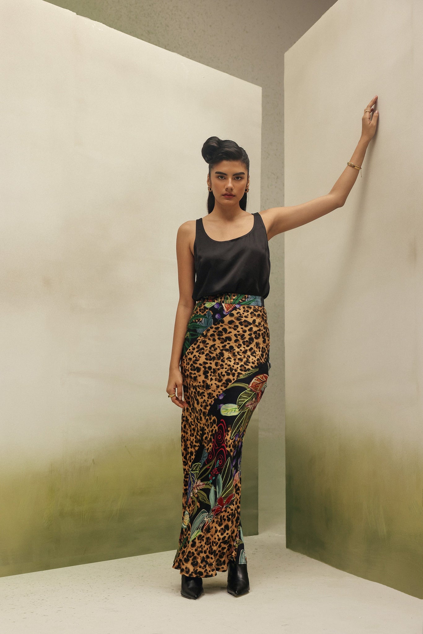 Ivy Skirt - Wildflower:- Crafted in flowing modal satin with a playful, mix-and-match placement print