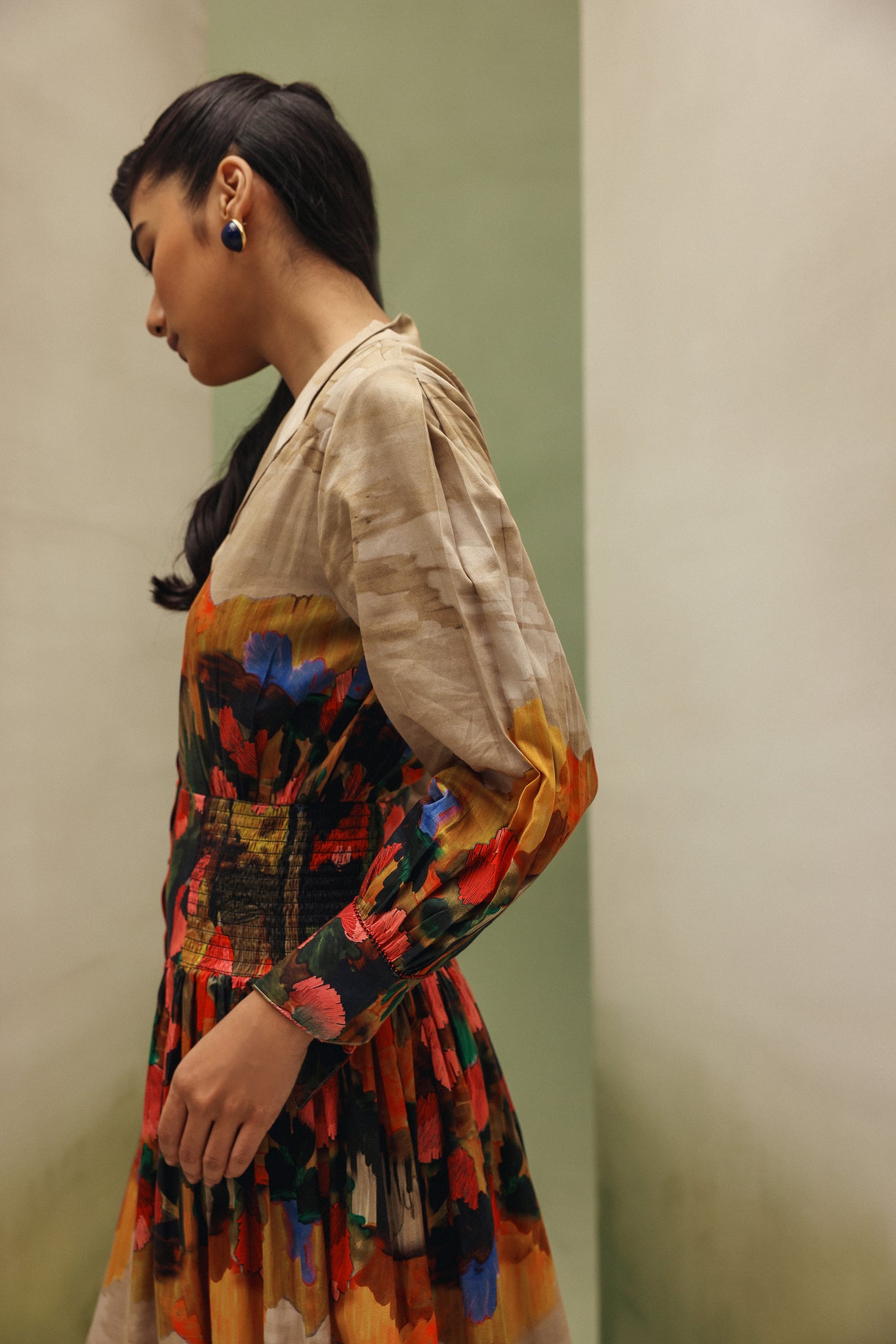 Crafted in soft cotton satin with smocked side panels for a flattering fit