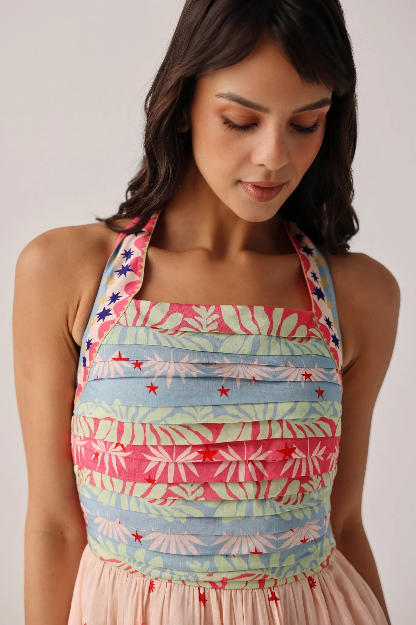 Pleated bustier detailing for gentle structure