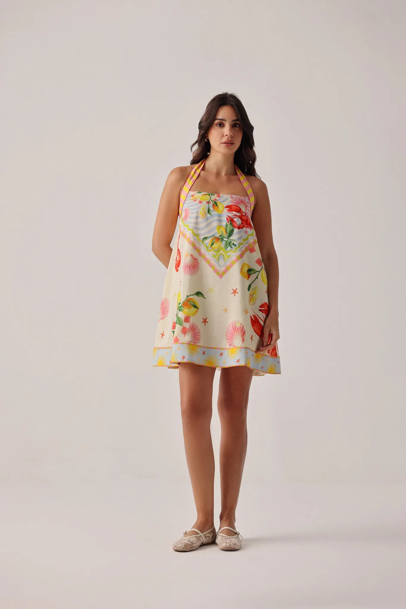 Relaxed halter-neck mini dress silhouette